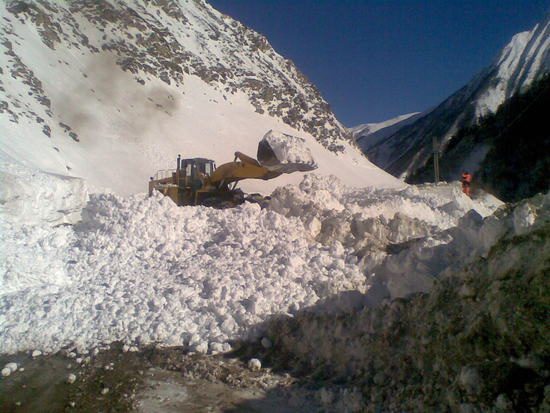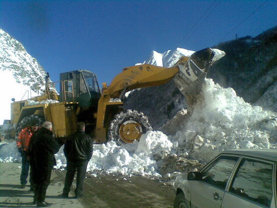 Снегоуборочный гигантский погрузчик, справился с работой быстро. Буквально за четверт часа. И мы поехали к себе домой на юг, а он на север, очищать ТрансКАМ, от очередной лавины.