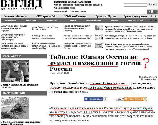 «Я думаю, что идея вхождения в состав России существует у нашего народа, это не секрет», - передает ТАСС слова Тибилова.»