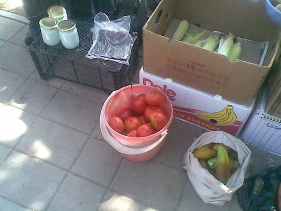 Сезон помидоров в самом разгаре, подозреваю что в Кабарде, они уже опустились к 20-30 р. за кг. У нас,привезенные оттуда "синьоры", словно ориентируясь на доллар, продаются по его рублевому эквиваленту, от 60-ти и выше. Местные помидоры идут уже за 100 и выше. Есть и по 150. Пожелтевшие отечественные огурчики колеблются в районе 50-60.