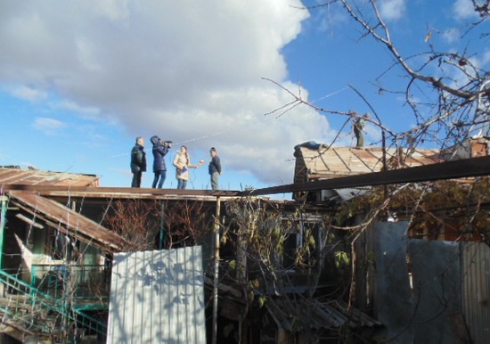 К обеду появилось и наше ТВ, девушки репортеры бесстрашно взобрались на крышу и взяли интервью в процессе, так сказать работы.