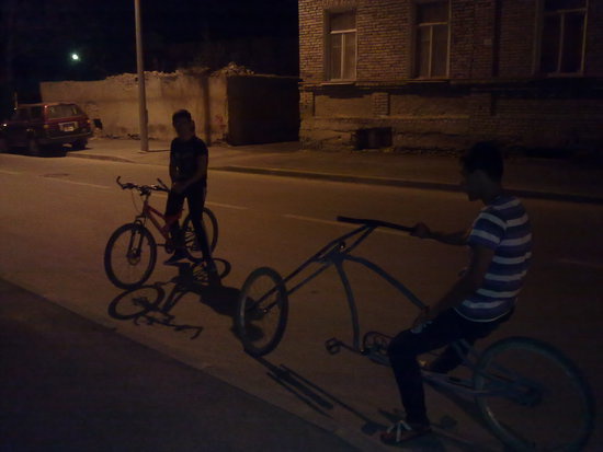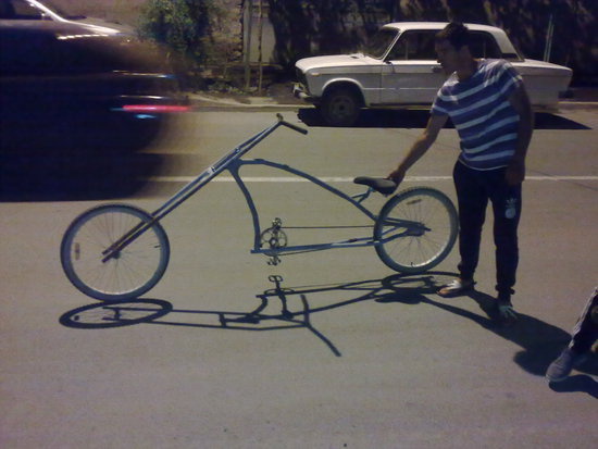 - Постой-ка, слушай у тебя клевый велик! Сам варил?