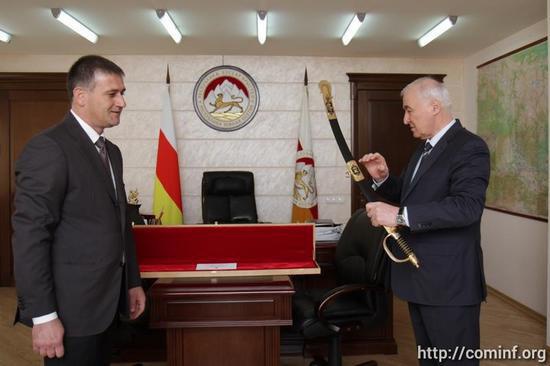 Поздравляли многие, и даже  подарки преподносили. Какой же День Рождения без подарков!? Председатель Федерального Собрания Российской Федерации Валентина Матвиенко, воспользовавшись оказией,  в виде встречи с Парламентской делегацией РЮО, передала нашему Президенту шашку!  Она конечно женщина с юмором. Ой, не снести головы тем,  кто будет препятствовать Харитоновичу в деле   "дальнейшего успешного выстраивания двусторонних отношений и упрочения стратегического союзнического партнерства России и Южной Осетии". Так наверно следует трактовать этот подарок. У парламентариев свой язык, кроме просто слов, - язык подарков, в их числе.