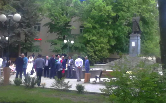А вообще-то на Вечный огонь заезжают молодожены, в Церковь тоже. Но так что бы на нашу центральную площадь – не особенно. С площади, молодожены и сопровождающие, проследовали к скверу Коста Хетагурова. Может они решили посетить Фатиму, и пожелать, что б никогда больше не было столь  драматических судеб у наших молодых невест. В любом варианте красивый обряд - почаще бы мы его видели!