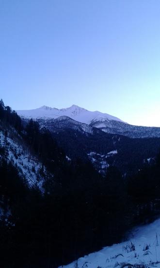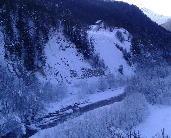 В общем, общий вид в верховьях пока не зимний. Горное солнце изо всех сил борется и отвоёвывает территории у снежной Зимы.
