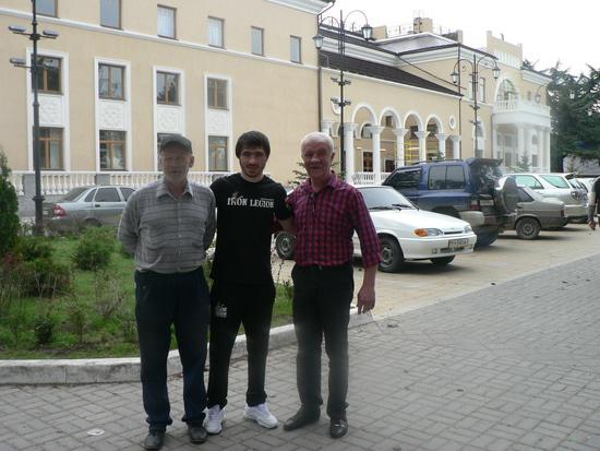 Но наши любители бокса уже фоткаются с теми кто приехал - а это наши земляки Сослан Тедеев, Таир Келехсаев  и тренер Алик Тедеев.