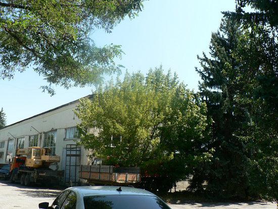 Территория тоже, поддерживается в порядке, насколько это возможно, в сегодняшних условиях. Есть беседки, аллеи стригут, фонари не разбиты. Охрана на проходной завода, не только охраняет, но и проконсультирует о том, что где находится и чем торгует. Вот только фотографироваться отказалась.