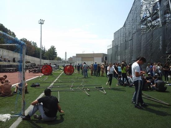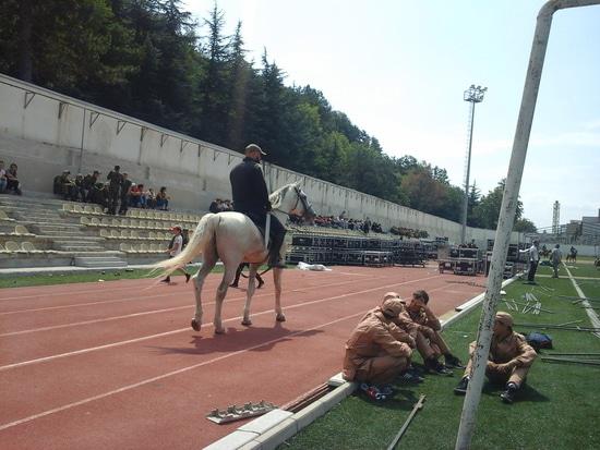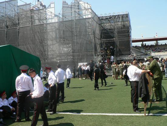 Завтра на стадионе состоится шоу посвещенное дню Признания Россией независимости РЮО. А пока идут репетиции. Я решил сделать фоторепортаж в стиле Behind the Scene.