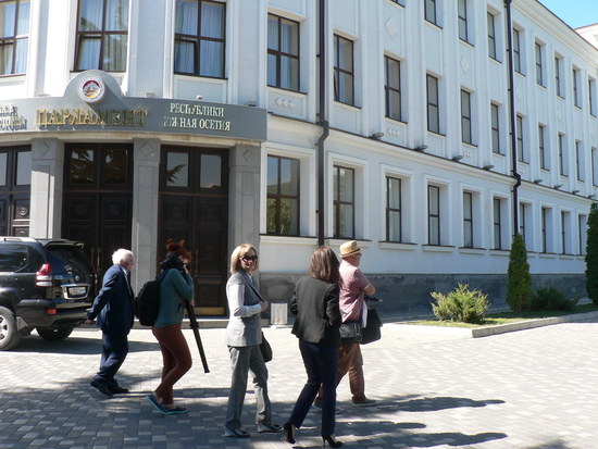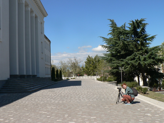 В Цхинвале снимают фильм. Узнал об этом случайно, прогуливался по мостовой перед зданием Парламента и встретил очаровательную операторшу, настраивающую свою технику.