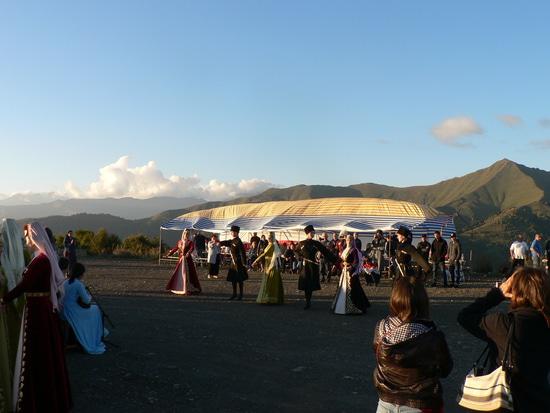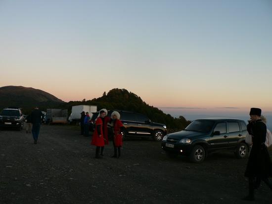 В понедельник поднялся, сопровождая туристов  в Святилище Джеры Дзуар, Уже наслышанные о том, что религиозные праздники у осетин, сопровождаются обильными возлияниями и мои гости,  поначалу, беспокоились, что их могут задержать, приглашениями на застолья.  Но застали, мы там, на поляне у Церкви Святого Георгия,  вот такую, сказочную картину, разрушившую сложившийся у туристов стереотип.
