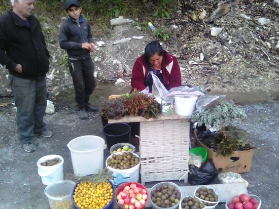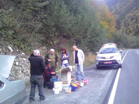 Наши дороги последние годы ремонтируются, приводятся в порядок. Но дороги, это еще и инфраструктура, в том числе и общепит и торговые точки. Недавно, на одной из наших трасс, появился такой необычный объект. Объект, конечно громко сказано, на самом деле семья живущая в придорожном доме решила пополнить свой бюджет а заодно поправить здоровье покупателй, торговлей дарами леса и альпийских лугов. Здесь прямо на обочине, можно купить и целебные травы, и полные витаминов дикие груши, сливы, и даже грибы.