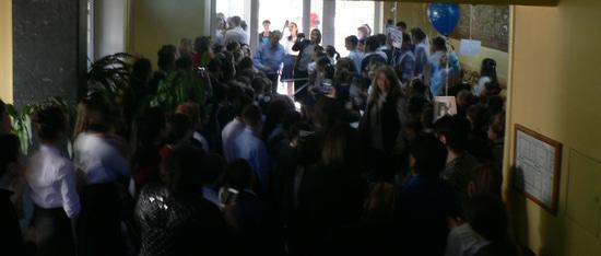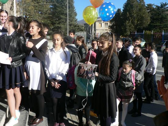 Основателя и бессменного директора, руководителя Лицея Искусств, Лаврентия Касоева чествовали сегодня, прямо у входа в Лицей ровно в 8.55, когла он по обыкновению приезжает в школу. Чествовали, поздравляли обнимали учителя, ученики а также их родители, сотрудники детской комнаты милиции и министр просвящения. Пришли и коллеги и дети из других школ. А Лаврентий Павлович все просил, "Спасибо огромное... Ну всё, пустите уже, у меня занятия. Ауадзут мае уроктаем"