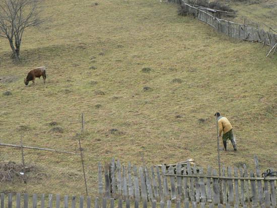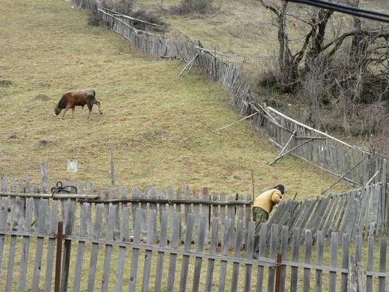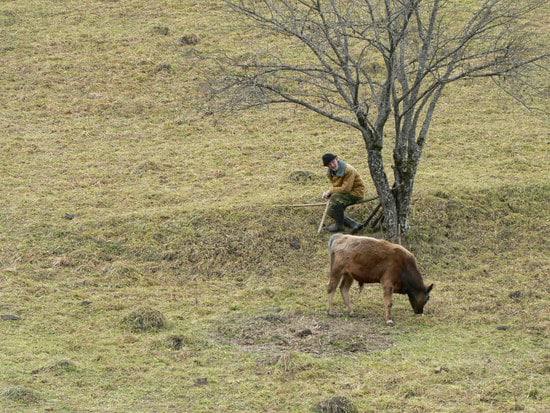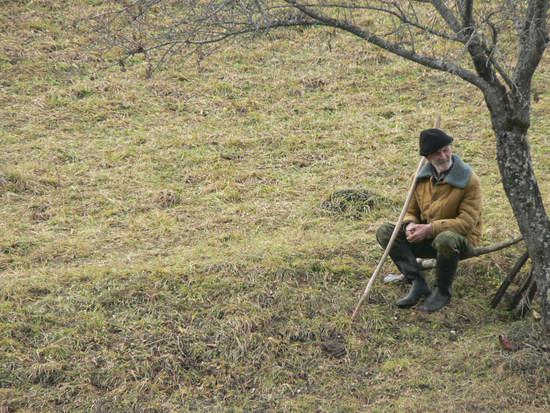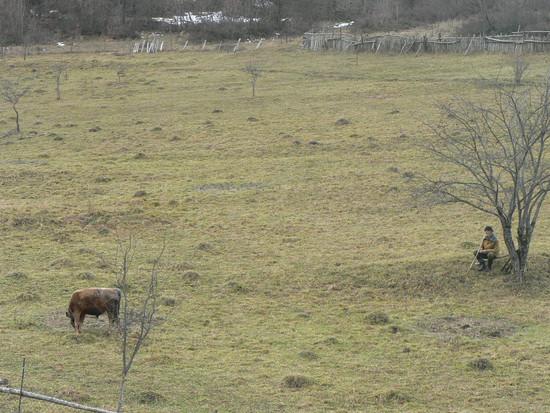 Он приходит сюда ближе к полудню, и проводит несколько часов со своим теленочком, а иногда и с двумя тремя коровками. Сюда - это огороженный участок, где в середине лета скашивают траву и заготавливают ее на зиму. Выросшая после косьбы травка вкуснее и наверно полезнее. Старик, таким образом, балует своих питомцев. Но не только в плане гастрономическом. Он подолгу беседует с ними, что-то советует, журит, хвалит, что-то рассказывает, в общем общается. В восьмидесятые годы, стали много писать о том что, «британские ученные» доказали, что  музыка влияет на качество молока у дойных коровок. В частности классика, якобы повышает и качество и надои. Наш герой, судя по всему,  использует вместо музыки - слово.