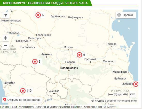 Несмотря на столь серьезные источники информации, на карте Роспотребнадзора и . университета Джонса Хопкинса на 31 марта, данных по Владикавказу нет.