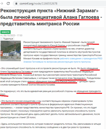 Реконструкция таможенного пункта «Нижний Зарамаг» была личной инициативой президента Южной Осетии, и российская сторона соответствующим образом отреагировала на нее, отметил директор департамента.