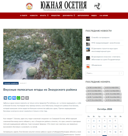 К сожалению сам доклад я не нашел, надеюсь еще с ним ознакомится. Но на самого меня, сразу как то нахлынули воспоминания о трудных путях развития нашего сельского хозяйства, которые полны тех самых примеров искусственной интродукции, и самое обидное - неудачной. Как тут не вспомнить арбузы, которые несколько лет назад взялся выращивать в одном из сел Знаурского района, если я не ошибаюсь, тамошний фермер. Пресса тогда во всю трубила о небывалом урожае и о вкусовых качествах югоосетинских арбузов, не уступающих астраханским, и подавно обогнавшим гардабанские. Но на следующий год ни об арбузах, ни о самом фермере уже никто по ТВ не говорил. Наверно если б он посеял бахчевые снова и на следующий год, мы бы о них услышали.