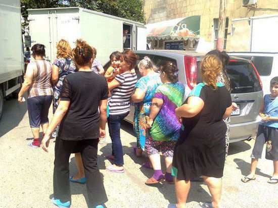 На этой фотографии женщины - беженки из Карабаха и Армении, осевшие в городе Мингячевир. Там проходили водные соревнования Европейских игр, были построены дома с квартирами для участников игр - иностранцев. Беженцам были обещаны эти квартиры после окончания Игр. И вот оказалось, что на всех беженцев нового  жилья в Деревне атлетов не хватает. Женщины устроили акцию протеста у здания местной власти.