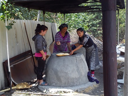 В кафе женщины пекут в хлеб тендире на продажу, можно посмотреть музей ковров и купить новый ковер. Когда я фотографировал женщин одна засмущалась – выставите наши фотографии в интернете, а муж увидит и убьет. «За что убьет, за то, что хлеб печете»? – ответил я шуткой. Мужчина стоявший рядом заметил что я не первый который сегодня их тут фотографировал.