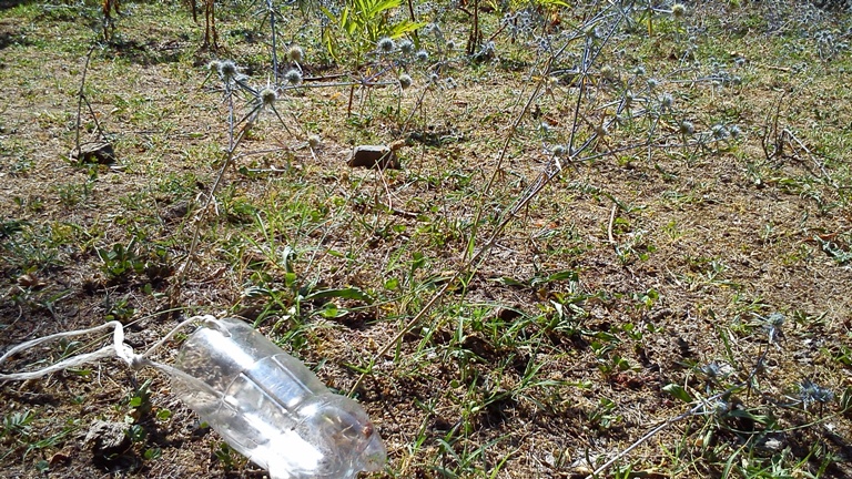 Синяя колючка помогает от дурного глаза - приводит к коньюктивиту. А в разрезанную пластиковую бутылку с веревочкой собирают ежевику
