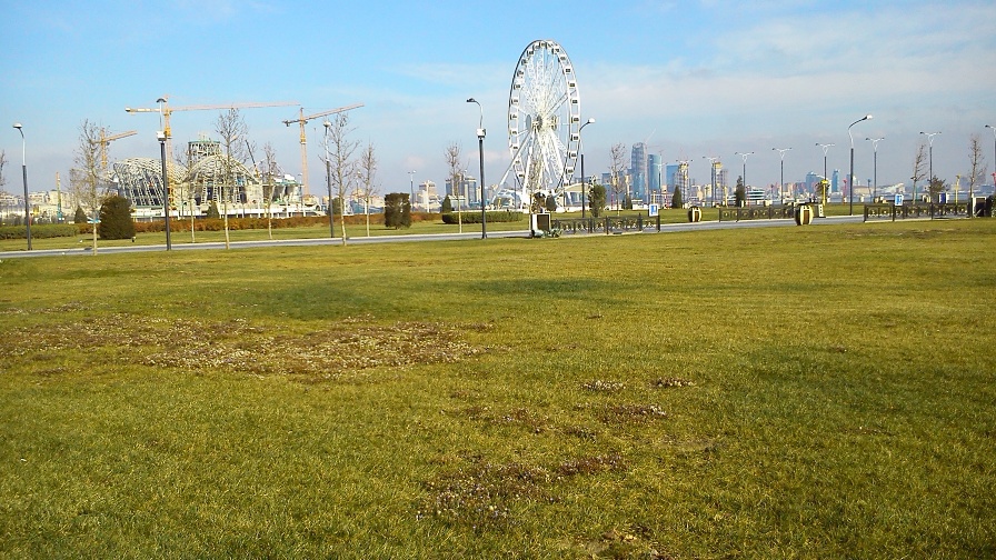 Морозным ясным днем, пройдя мимо замерзших фонтанов напротив Кабмина, спустился к морю и прогулялся по Новому Бульвару. Раньше на этом месте было черное нефтяное поле с вышками-качалками и сетью полуржавых труб. В море множество затонувших посудин. Лет пять назад вывезли черную почву и завезли новую, посадили деревья, установили освещение, скамейки и гигантское Колеса Обозрения, почистили море. Получилось 1,8 километровое продолжение старого и сильно обновленного бакинского Бульвара.