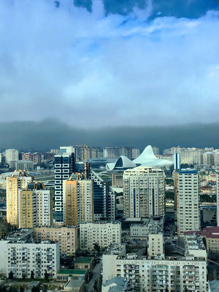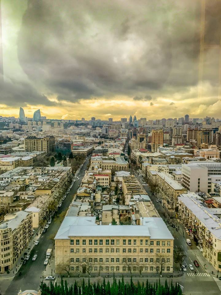 Следующие два снимка сделаны англичанином Дэном Масоном, под общим названием "Мой Баку в разную погоду". Снимал с сорокого этажа одного из бакинских офисных зданий, в районе Железнодорожного вокзала