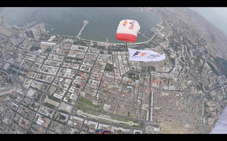 Впервые над Баку летали люди в специальных костюмах по принципу летучей мыши (foto Novosti-Azerbaijan)