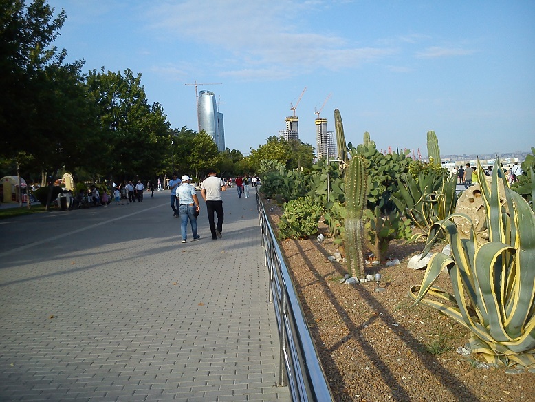 Арабы тоже молодцы, не остались в долгу и оставили на листьях кактусов на приморском бульваре свои арабские имена (надеюсь, это не призывы собираться в ИГИЛ!). Как раз кактусы на кактусной аллее зацвели и знать, что приезжий из самого Ирака, нам -  бакинцам очень полезно. Азербайджанцы тоже, желая показать что они грамотные люди, оставили свои надписи.