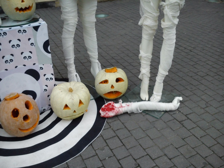 Проходил по центру Баку и увидел эту группу манекенов, переделанных в ужастиков. Смотрю, люди оглядываются и фотографируются рядом с группой. Сам сфотографировал, только на третий день вспомнил, что это Хеллоуин чертовый приближается. Вспомнил когда рассмотрел на снимках тыквы. У нас же национальный американский праздник разных привидений уже становится родным-азербайджанским, как день святого Валентина. Да и Новый год, то есть Рождетство тоже лет 200 назад был импортирован в Азербайджан из тогдашней России.