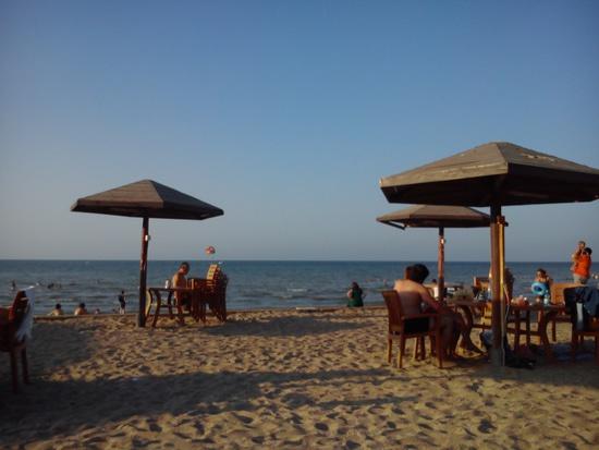 Сейчас вернулся с моря, немного поплавал. Благодать, вода теплая, народ культурно отдыхает. Море, кутабы, в небе парашют привязанный к катеру…