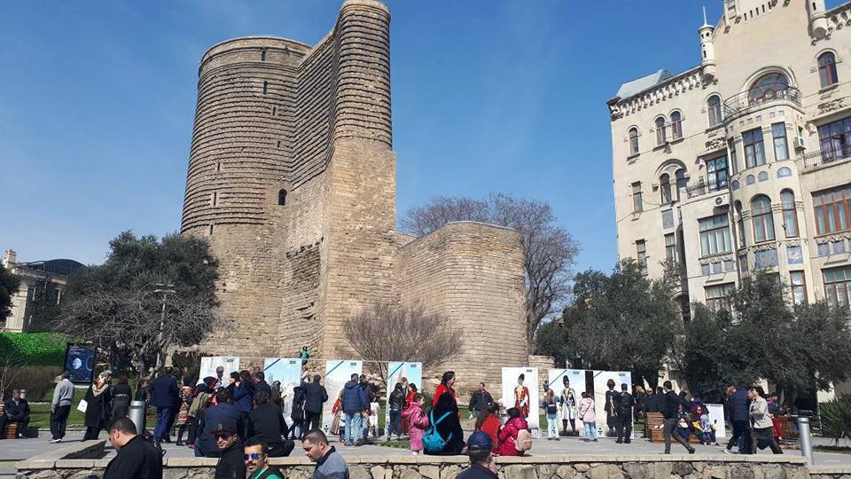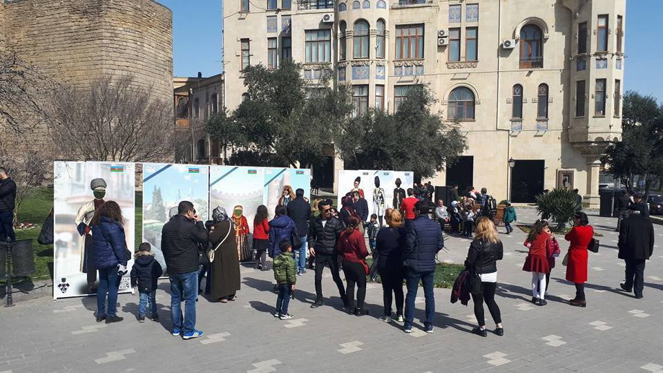 В Новруз администрация Баку придумала веселую забаву  - просунув голову в портрет можно сфотографироваться, представ в образе героя азербайджанской классической оперетты.
