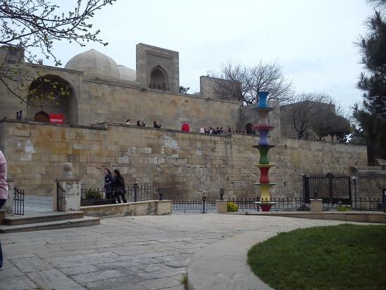 В банке русская туристка с двумя детьми хотела обменять рубли на манаты - не поменяли. Она и в другом месте не смогла - так туристка сказала.  Не знаю почему не меняют рубли. Рубль упал под ударом Трампа - может поэтому, банки не хотят с рублем связываться не зная - прогадают или выиграют? Жаль туристку, помог бы если мог. Много их в городе - чаще арабы.   На фото - очередь туристов у входа в комплекс дворца Ширваншахов