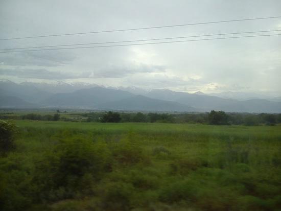 На фотографиях - купейный вагон производства ГДР, качественно переделанный в Баку. Достаточно комфортен, ездить можно, но с нетерпением жду когда их отправят в утиль и выставят двухэтажные от "Стадлер". В углу вагона  - самоварного типа аникварный кипятильник для чая. Вид из окна на Гахский район. Вид  на мой дворик - успел скосить немного травы, а у стены осталась на завтра