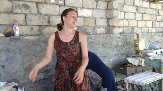 А в Илису для гостей мама известного автора Википедия Намика Ман-Таша приготовила гырц и сюрфюллю. Американцы учились готовить эти блюда, слушали рассказ организатора тура Фариды Буйуран (она на последнем снимке) о том, откуда и как появилась азербайджанская кухня, и конечно, все это поедали, по английски коротко комментируя.