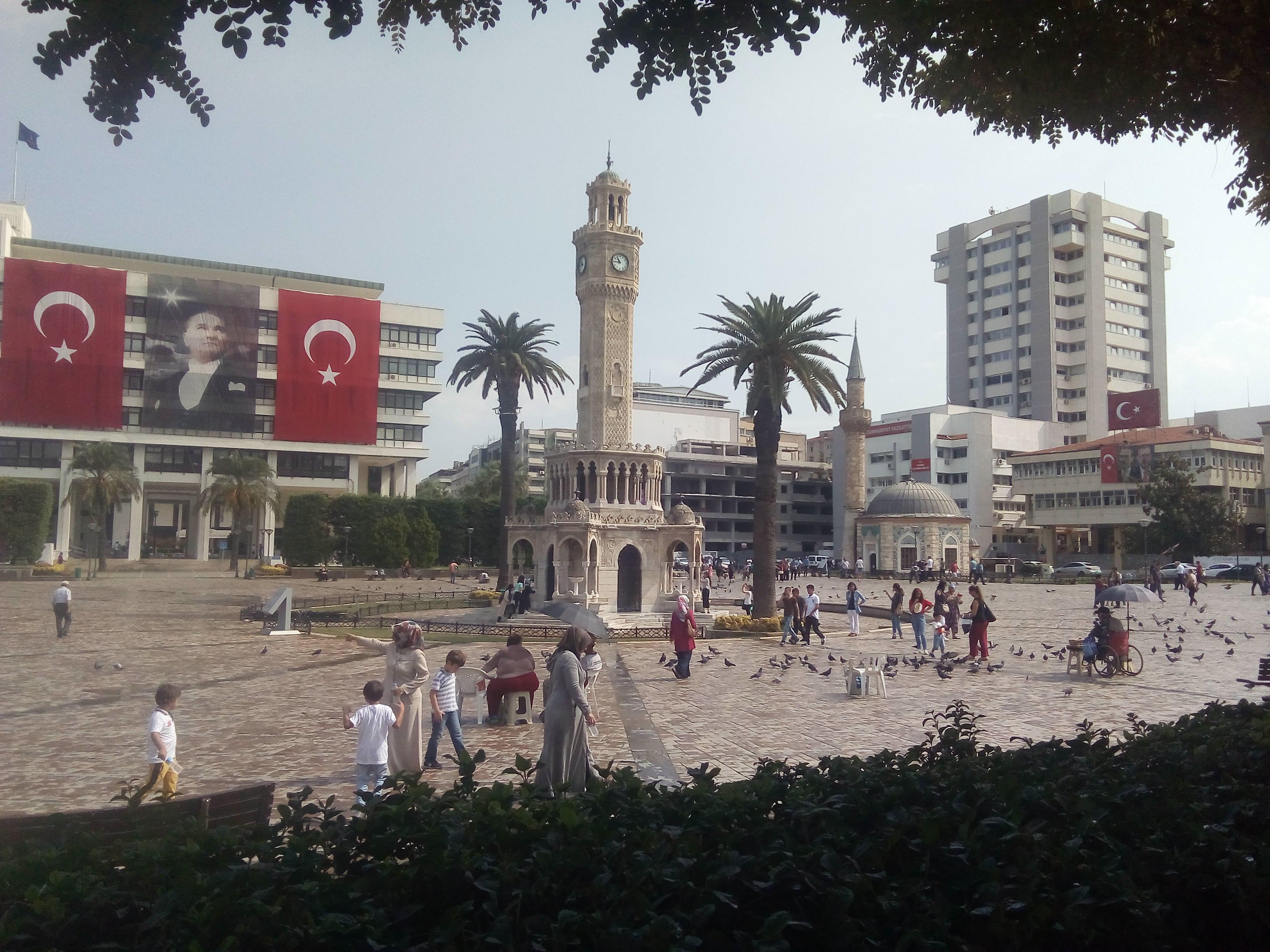 Город сразу понравился тем,  что в нем нет хрущёвок новостроек и наших спальных районов настраивающих на суицид. Деловой,  энергичный, белый, холмистый и прибрежный Измир вмещает 4 млн жителей. По бухте ходят корабли везущие народ из края в край города. специально для защитников греческой истории города сообщу что одна из площадей