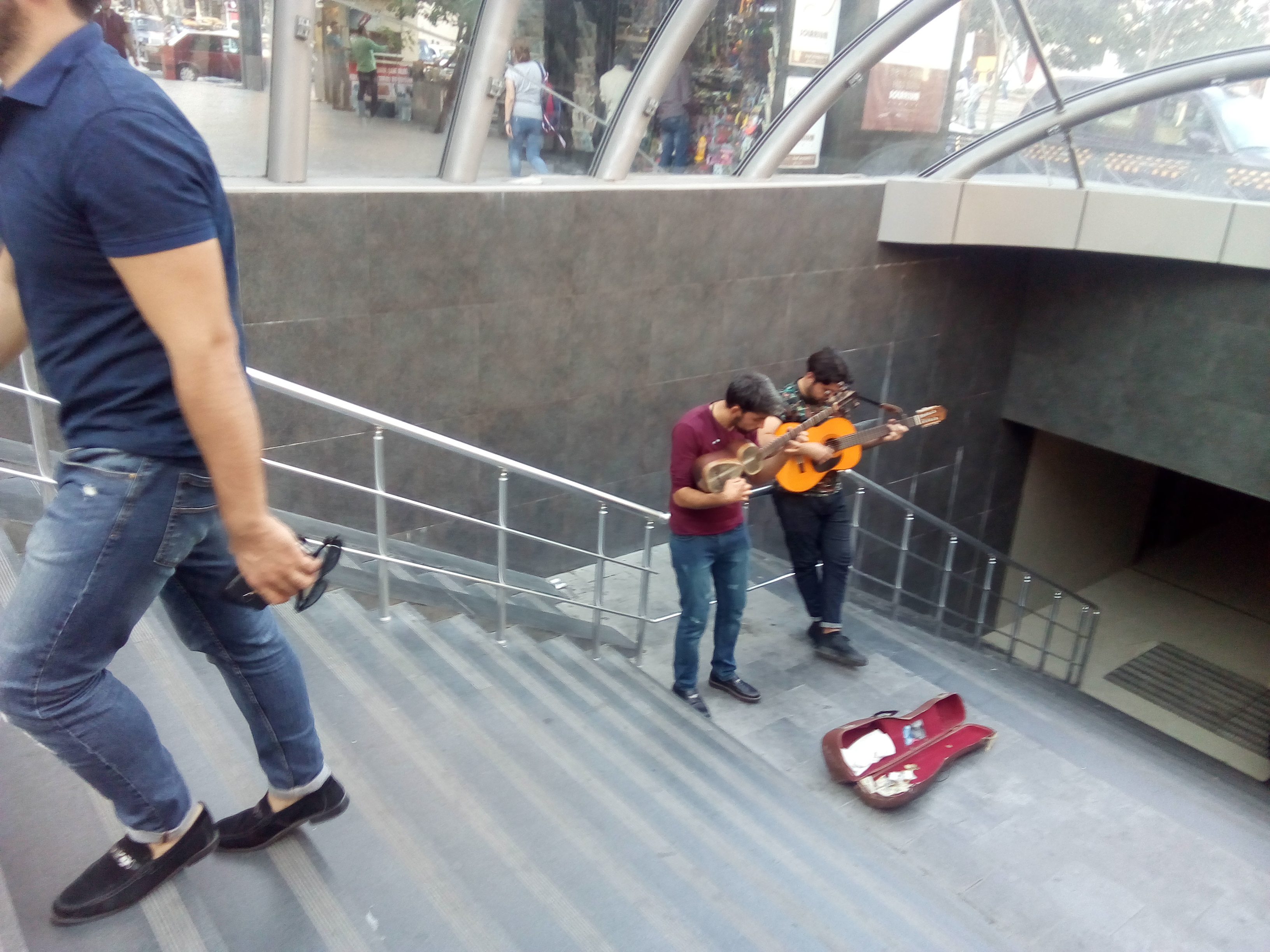 Некоторые могут вообще в этот день не горевать, никто за этим не следит, хоть танцуй на улицах. Ребята на втором снимке играют в подземном переходе европейский популярный хит, причем один инструмент у них сугубо национальный - тар,  европейскую мелодию передает интересно.