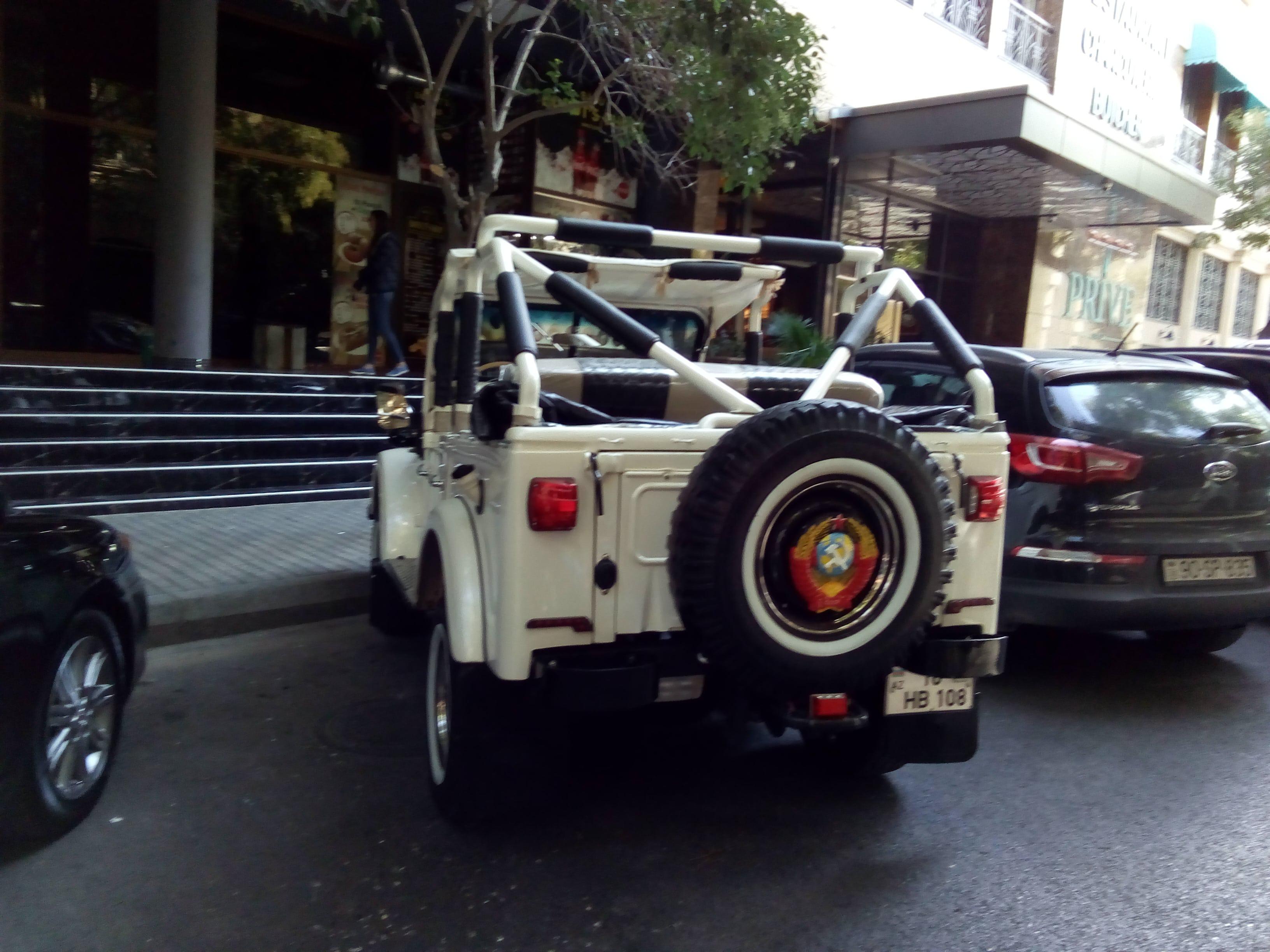 В Баку, у ресторана "Султан" заметил припаркованную ностальгию по СССР на четырех колесах. "Газик" переделанный в городской компакт-кроссовер. Аутентичность порушена, о вкусе не спорят, хозяин явно человек веселый, налепил на машину все что нашел "с того времени". Не обременен стремлением сохранить в автомобиле все как было до последнего винтика. Восстановил так, как мог и хотелось. Это тоже форма ностальгии по прошлому. А что моему поколению вспоминать, если в нашем личном прошлом ничего кроме СССР не было?