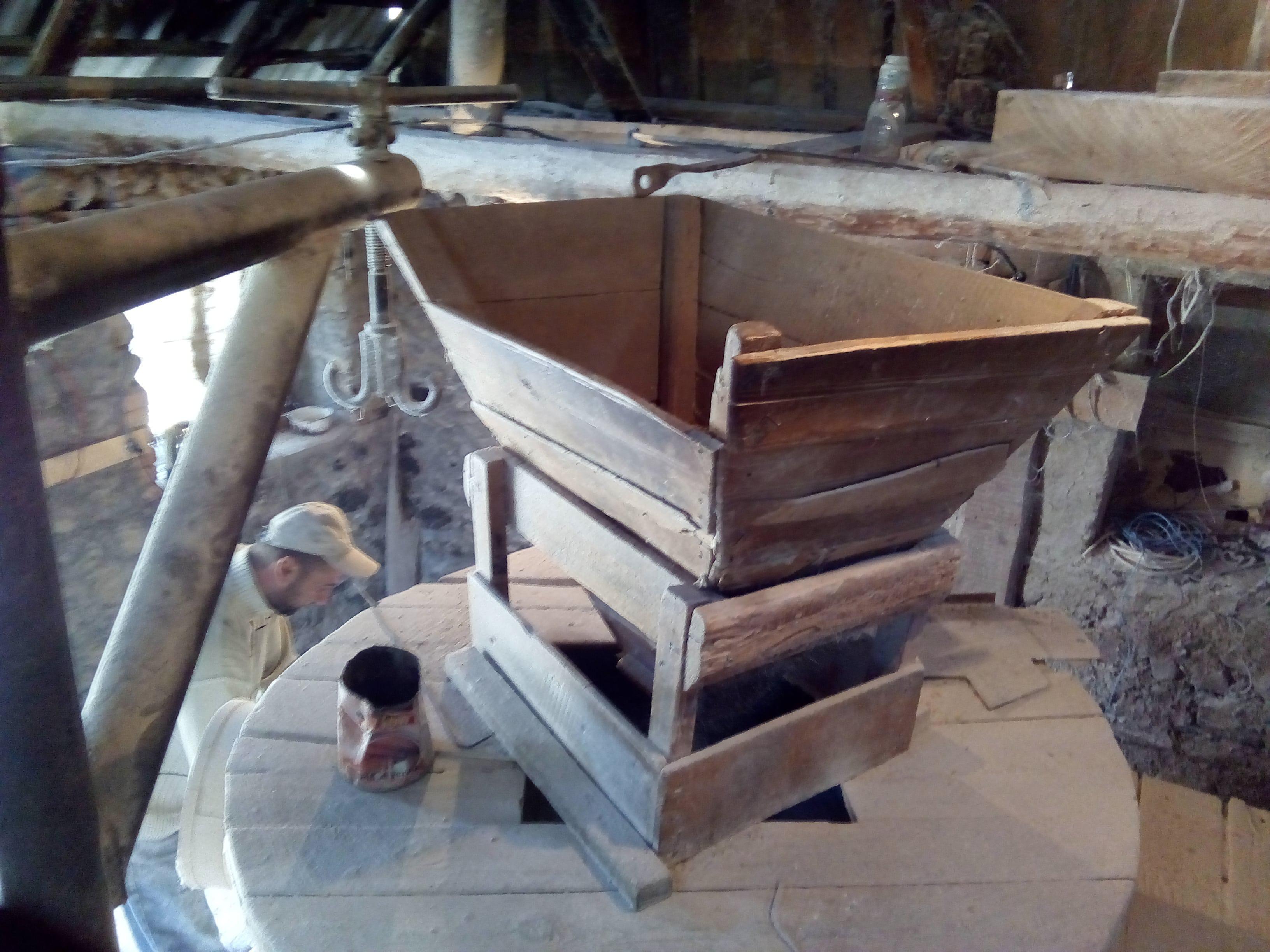 В детстве я любил залезать на эту высоту, чтобы смотреть как в деревянный короб сыпется зерно. Боялся упасть вместе с зерном между жерновами. А мельник Абакар смотрел на меня, смеясь, внизу.