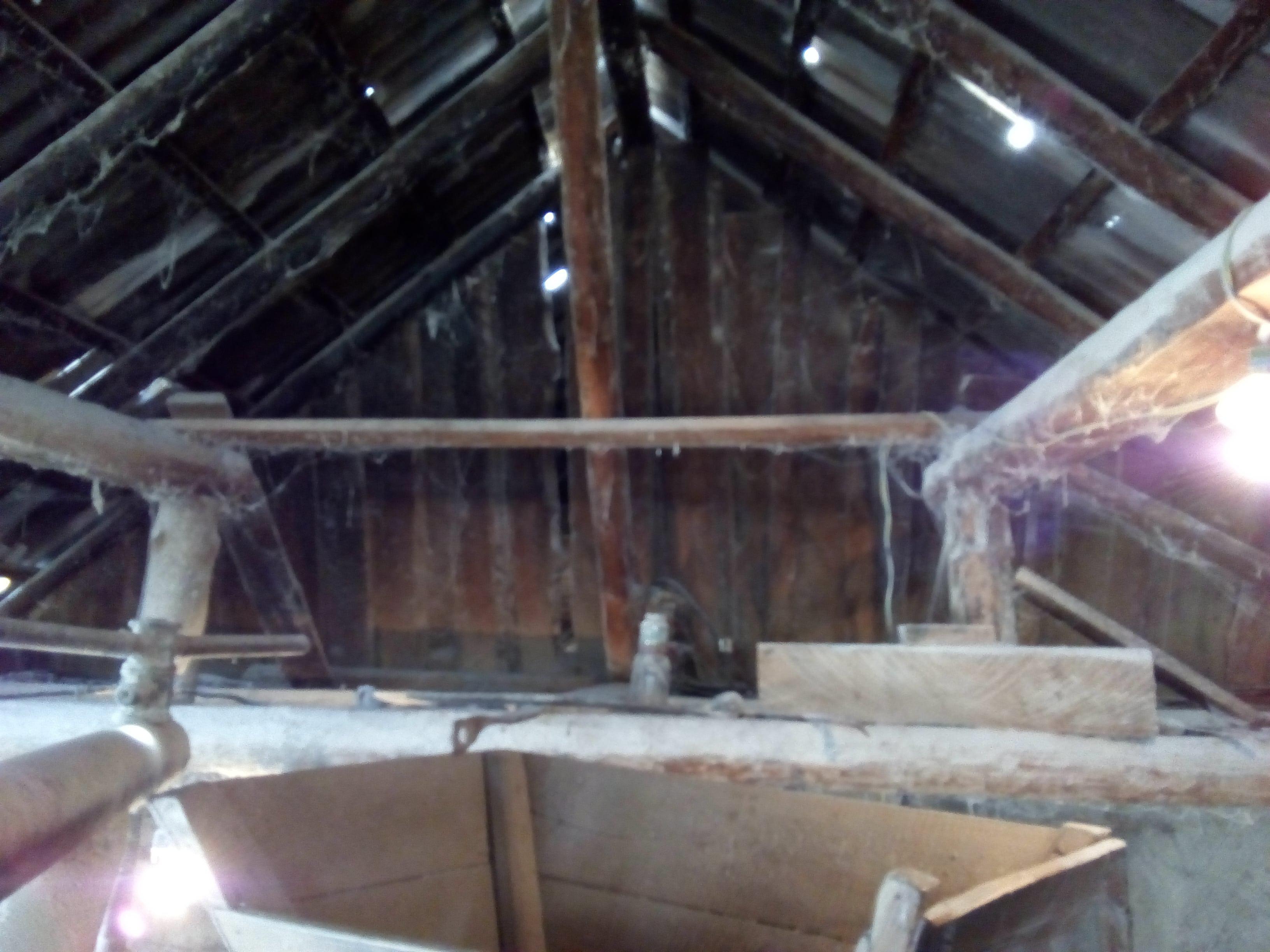 Под ветхой крышей, которую мельник каждый год обещает капитально отремонтировать, вечная паутина с налипшей мукой. Пауки наверное, тоже как мельник, трудятся в новом поколении