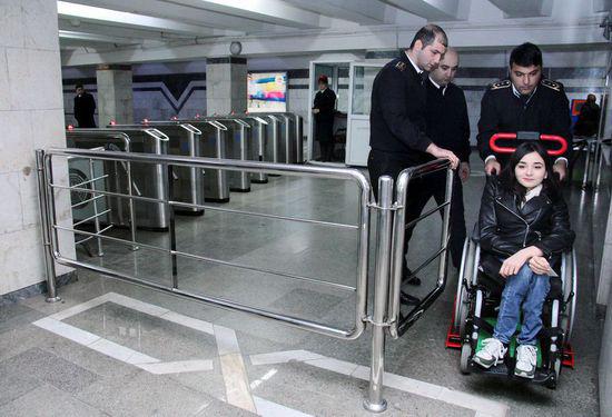 С этого года смогут. В бакинском метро запускается система обслуживания людей в колясках, пользующихся двумя старыми линиями на которых строительство лифта невозможно. На двух новых станциях лифты есть. Люди с ОФВ будут заранее оповещать по телефону или телефонному приложению, их встретят работники метро и с использованием специальных устройств будут обеспечивать передвижение на эскалаторах и в вагонах. В головных вагонах создаются места для людей в колясках. Специально обученные работники будут сопровождать таких людей до выхода из станции назначения.