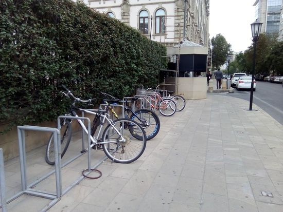 На прошедшей неделе в Баку проложили велосипедную дорожку, на первом этапе будет 7 км. Первая такая в истории Баку. Вчера проходя мимо фотографировал велосипедную стоянку у бизнес-центра, в исторической части города. Процесс европеизации идет успешно. Для того, чтобы жить правильно, не обязательно жить в Европе