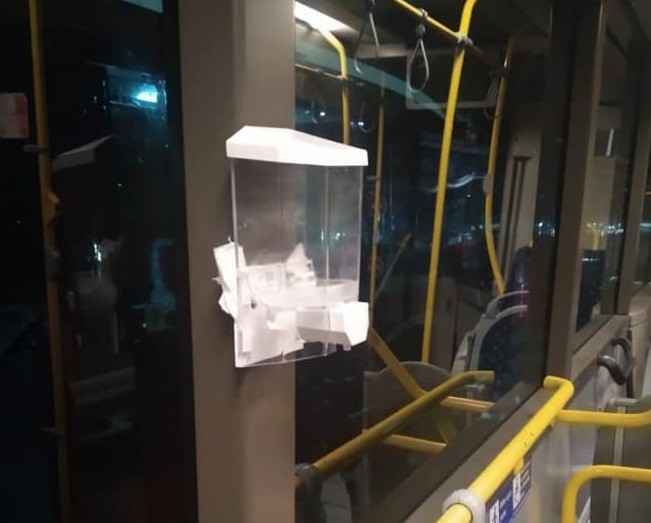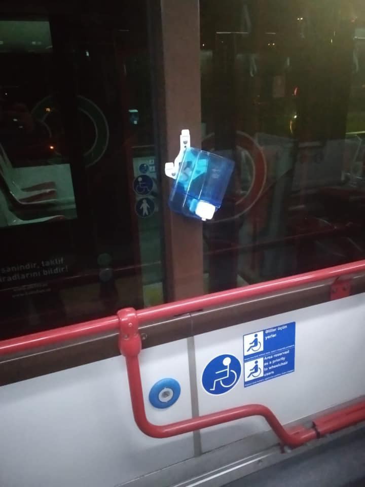 Но есть у нас пассажиры, которые достойны как раз скотовозок. Бакинец Маис Агаев разместил в ФБ снятые им фотографии диспенсеров, которые развешаны в автобусах для того, чтобы пассажиры могли очищать руки спиртом. Услуга бесплатная, для нашего здоровья и безопасности. Удивляют вандалы, наши бакинцы (других в городе теоретически нет), которые целенаправленно ломают диспенсеры. Этих врагов можно арестовать, ведь в автобусах установлены видеокамеры. Достаточно найти 2-3 негодяев и показать их по ТВ, чтобы другие поняли и уняли свою варварскую сущность.