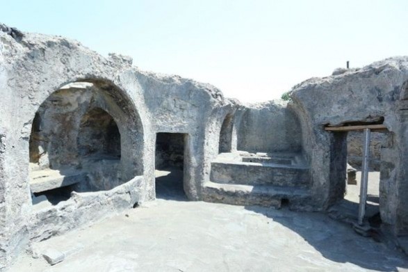 А вот что на этом месте создали в этом году. На 8-м снимке нового поселка показан Овдан - в таких строениях люди брали подземную воду - спускались по каменной лестнице вниз к подземному колодцу и черпали оттуда. Овданы, не действующие, сохранились в Баку и во всех поселках Апшерона. Дальше можно видеть развалин общественной бани и фотографию цеха по изготовлению ковров.