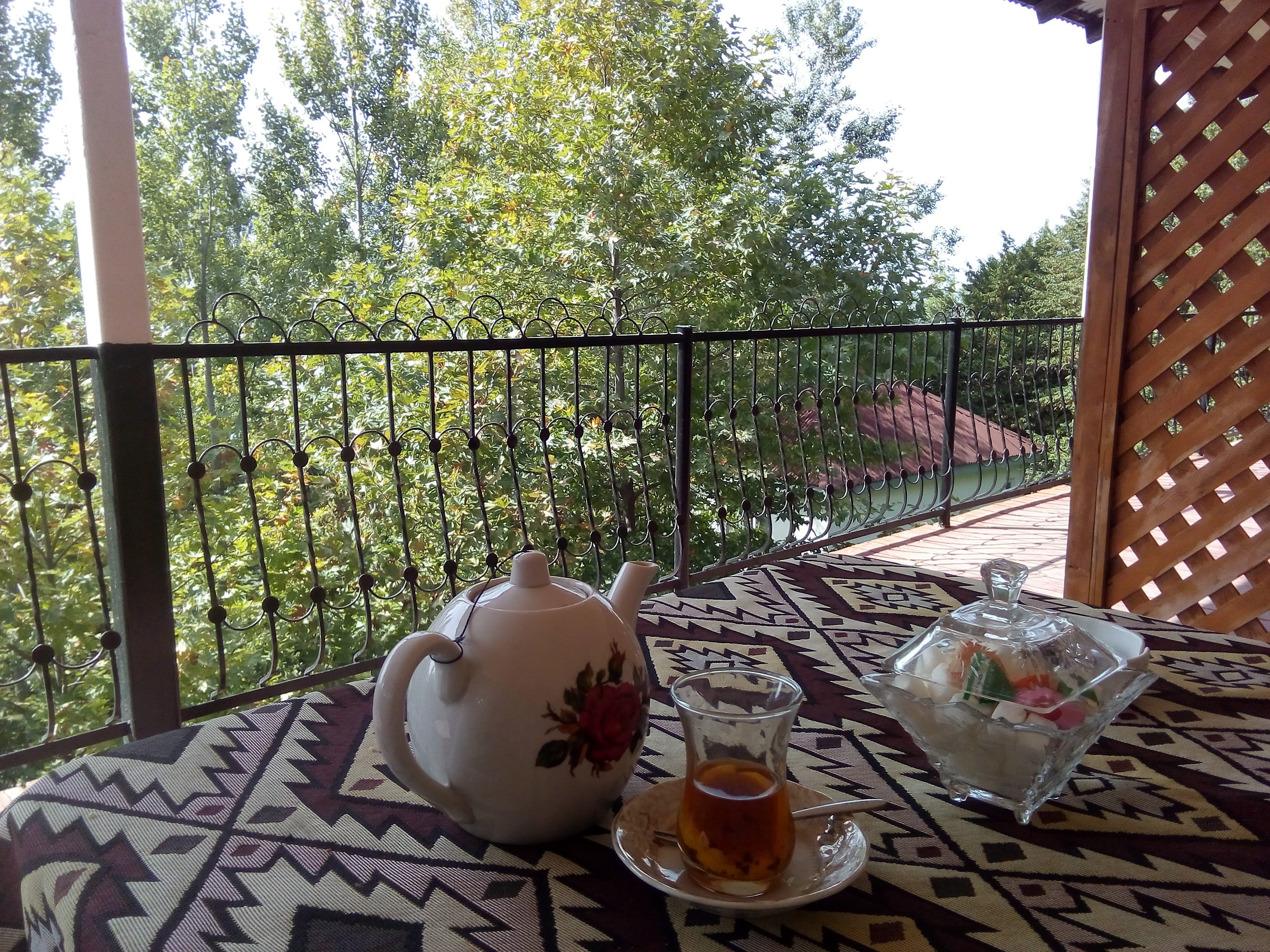 По дороге приземлились в Габале, есть там кафе над рекой, я обычно там чай пью, отдыхаю