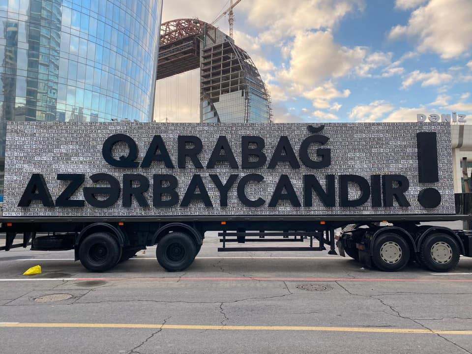 Кто не знает объясню: это символический ответ на длинную стену в одном из сел Кялбаджарского района, составленную армянским гаишником-полицейским из регистрационных номеров азербайджанских автомобилей, оставшихся на оккупированных территориях в 1992-93 годах. Ту стену из номеров азербайджанских машин армяне показывали туристам, посещающим Гарабаг. Сейчас нет и не будет тех туристов, азербайджанские номера вернулись домой, а мы показываем армянские номера. Пока на них глядел президент Турции, кому будем показывать дальше - не знаю. Можно и в утиль отдать на переработку.