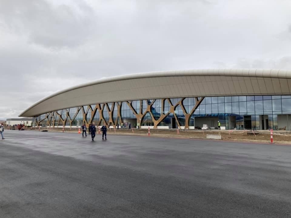На фото - новая дорога ведет в Шушу, на скалистой горе видны контура этого азербайджанскго города. Аэропорт в Физули. Из Баку до него полет 30 минут. Укомплектован персонал аэропорта, на работу взяты местные жители.