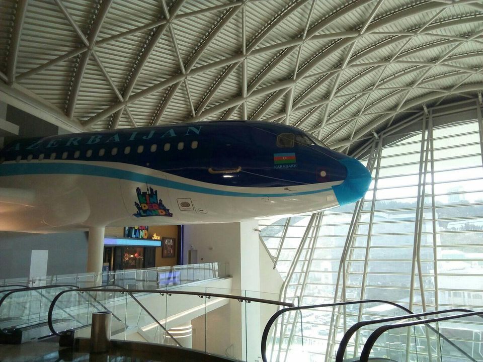 На последний пятый этаж Дениз молла можно подняться на лифте или взлететь в Боинге. На фото видите самолет, сел на пятом этаже, ждет пассажиров