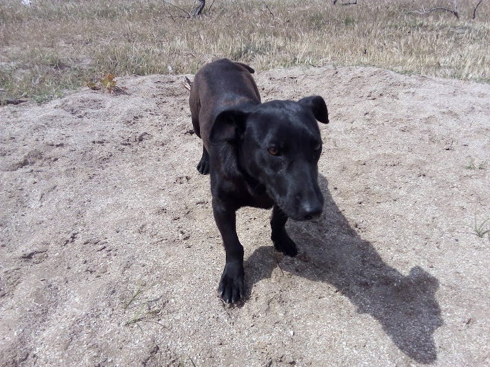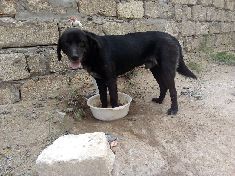 Сегодня утром взял кулек с кормом, пошел туда, чтобы продолжить занятие с Тобиком - так назвал его сосед. По пути вижу - крупный черный пес, с следами снятого ошейника, мается, ищет прохладу, лезет под стоящий автомобиль. Соседи не знают кто и откуда, советуют мне взять собаку.