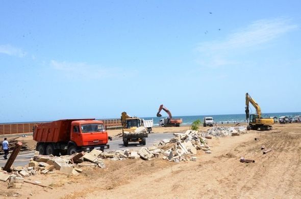 А сегодня начался масштабный снос незаконных заборов и ресторанов на каспийском побережье, в поселке Бузовна. Это достижение группы местных активистов, которые два месяца проводили публичные акции, привлекли журналистов, снимали видеообращения к президенту, вообще провели большую креативную и умную пропагандистскую работу. Результат - сегодня местная и бакинская власть, с привлечением строительной техники и рабочих, начала крушить все заграждения, закрывавшие доступ к морю людям.