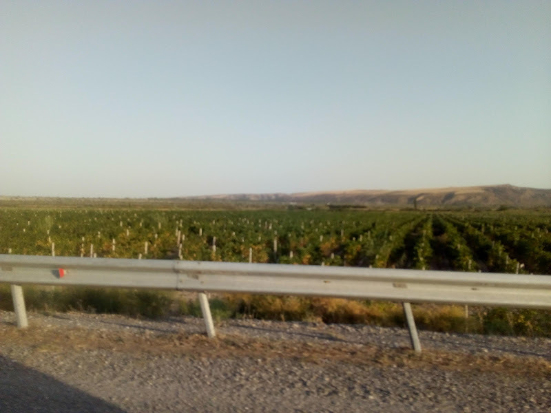 Помидорные, гранатовые, виноградные поля, огороженные заборами и охраняемые, деревья высажены по линейке, до горизонта. Таких полей, а это явно агропарки, призванные заменить в нашем экспорте газ и нефть, прежде на равнине не было. Впечатляющие сельскохозяйственные заделы для наполнения госбюджета правильными, экологически полезными и перспективными деньгами.
