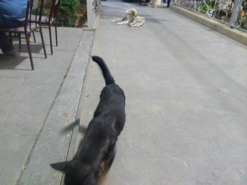 Место нашего отдыха в Шамахе я назвал "Кафе счастливых собак". Отъевшиеся на остатках пищи сотен ежедневных едоков, собаки валяются там где хотят, просыпаясь только чтобы почесаться.  У нас теперь, научившись у турок, собак не обижают, люди обходят крупных животных, лежащих прямо на их пути, и это вызывает умиление.
