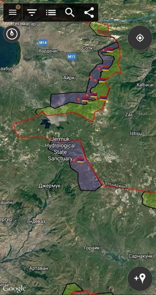 На карте от историка Ризвана Гусейнова зеленым цветом указан созданный за ночь пояс безопасности